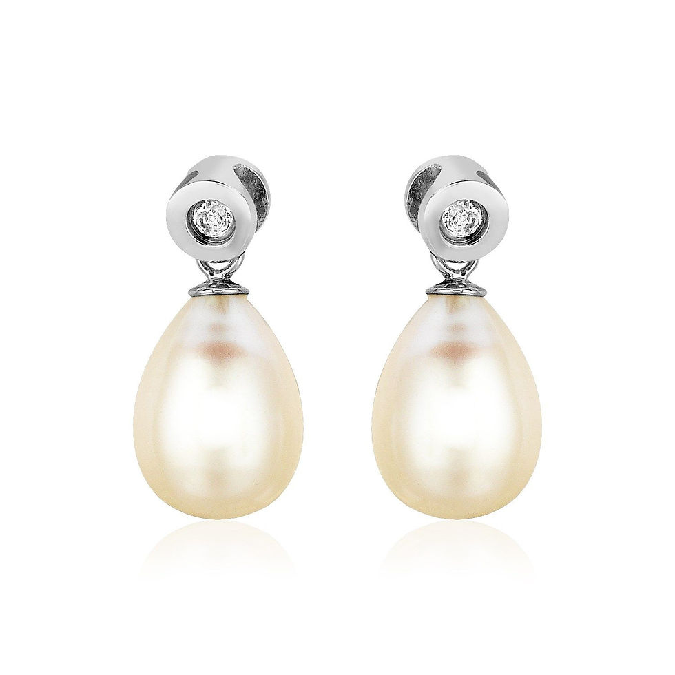 Sterling Silver Earrings with Pear Shaped Freshwater Pearls and Cubic Zirconias